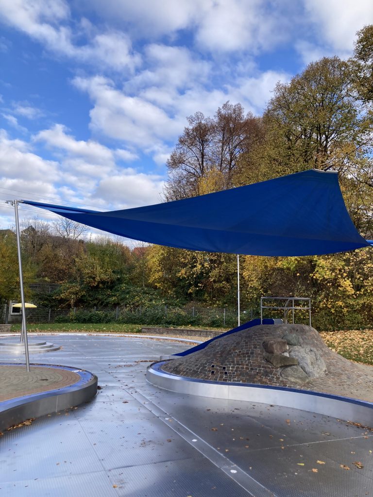 Das neue Sonnensegel für die Kinderplatsche im Freibad Geislingen hat der Freibadförderverein angebracht. Die Bürgerstiftung übernahm mit 14.000 € einen Teil der Kosten. Foto: Freibadförderverein Geislingen e.V.